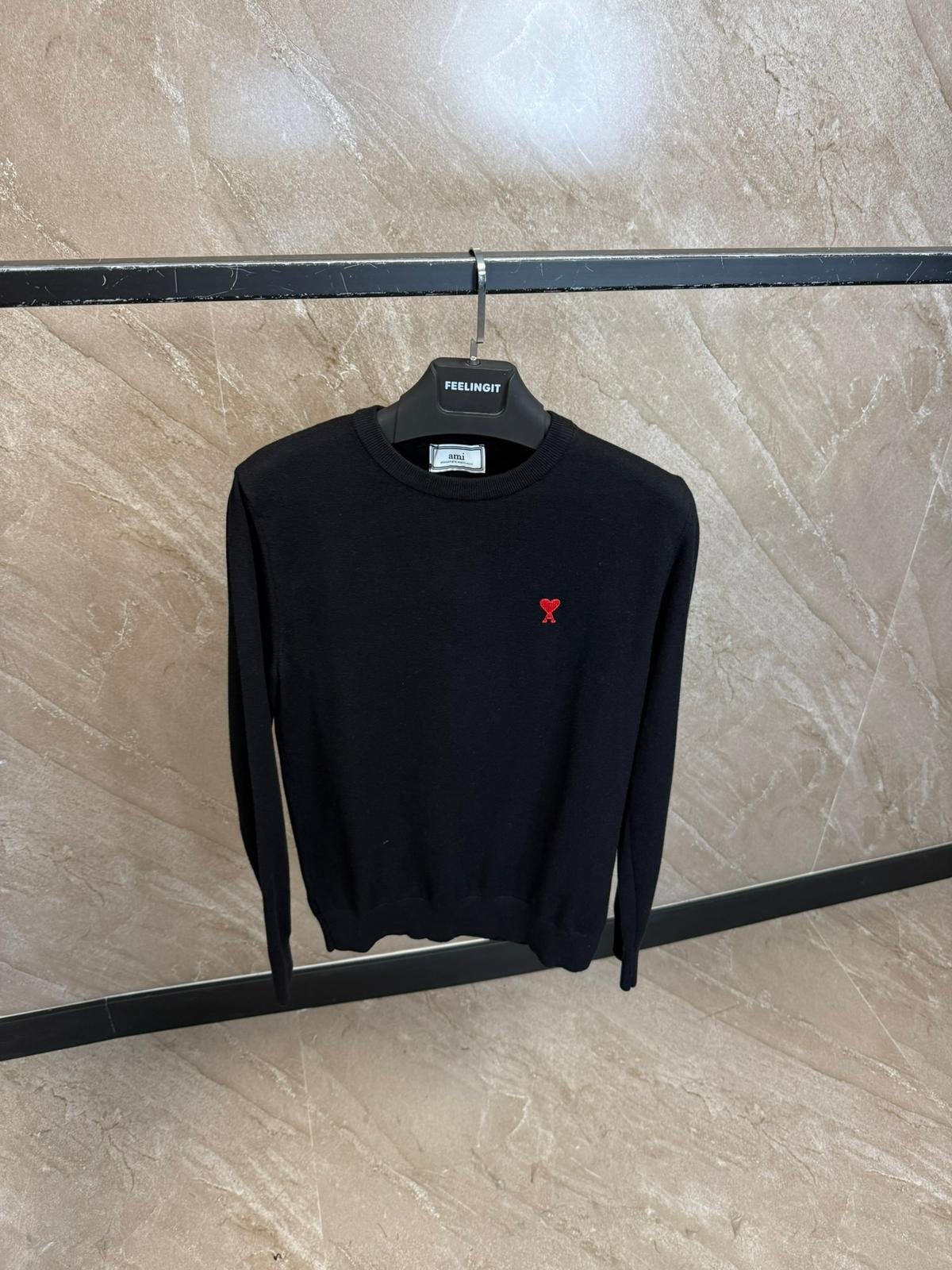 Ami Sweater Black, Red Logo Aantal