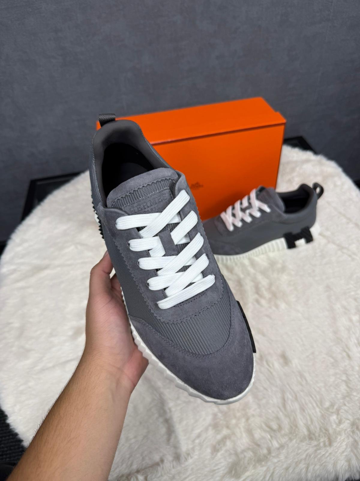 Hermes Bouncing Grey Suede Ribbels