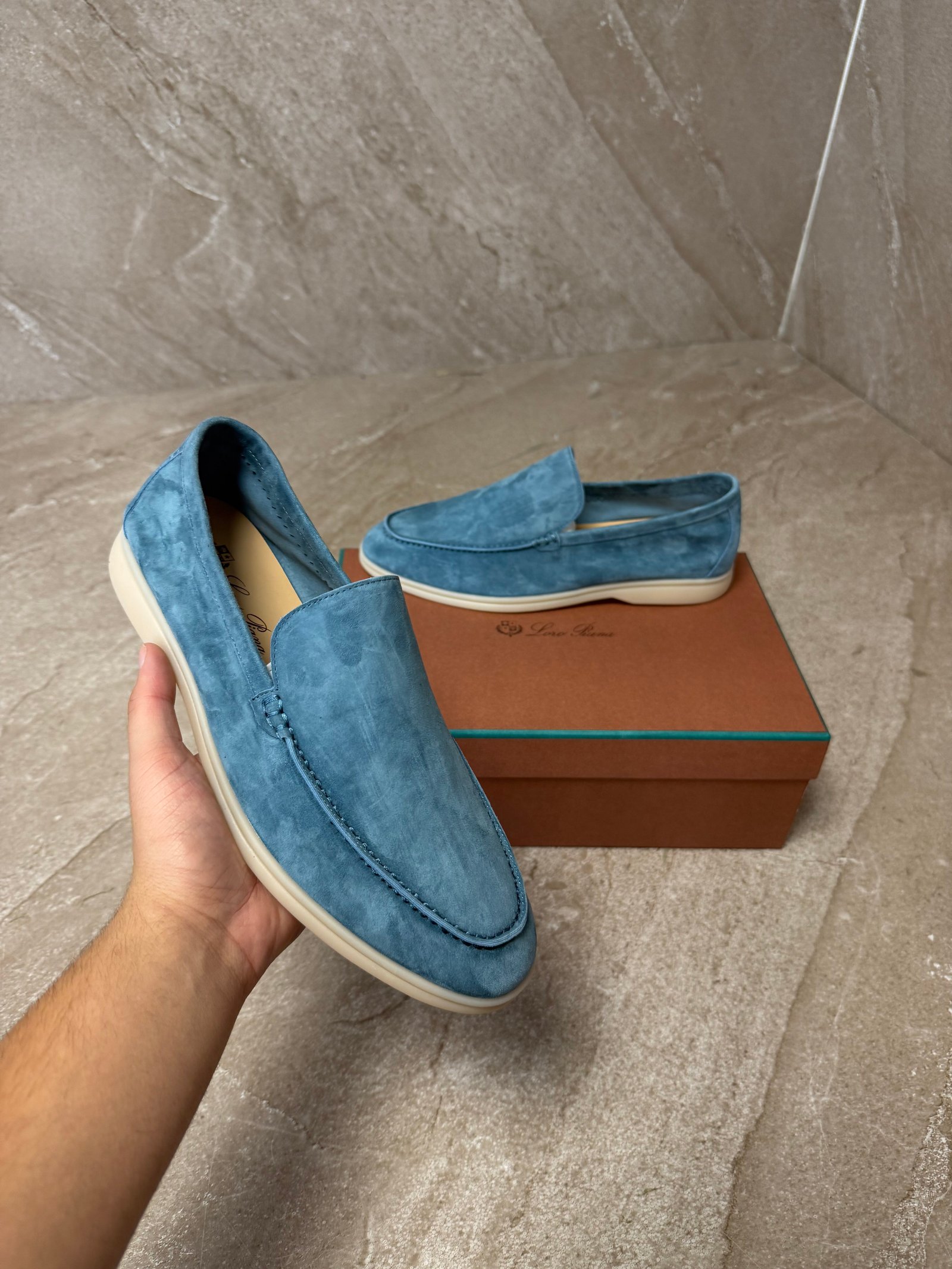 Loro Piana Summer Walk loafers Pine Cloud
