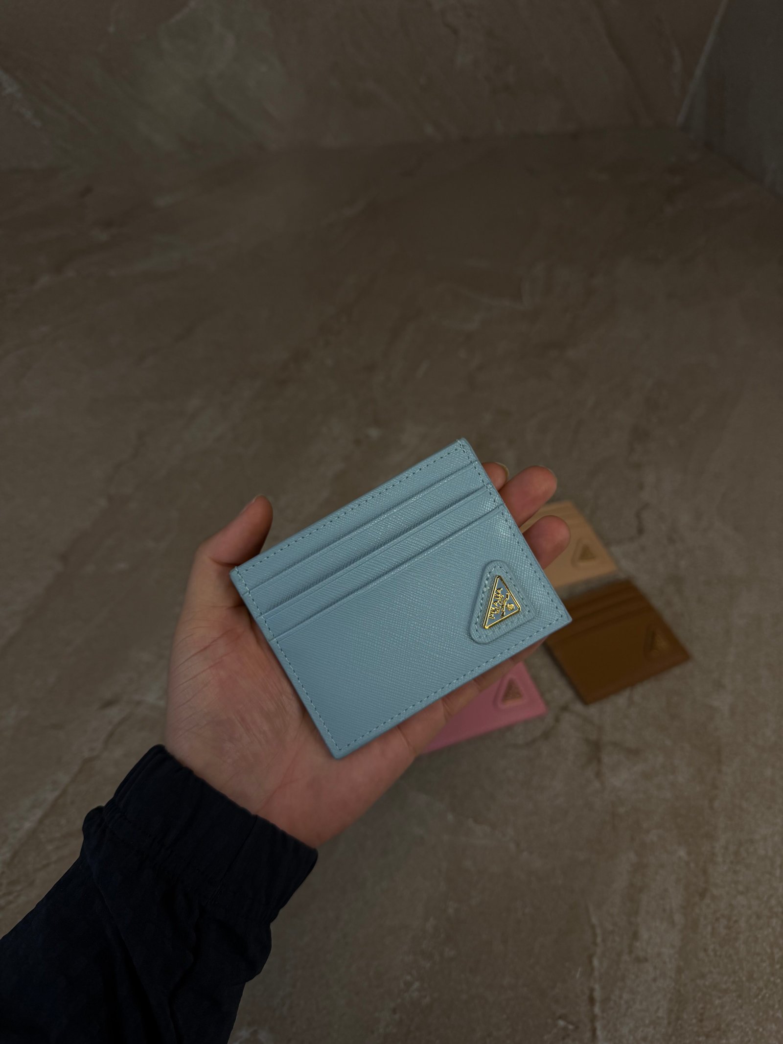 Prada Saffiano Leather Card Holder Light Blue Aantal